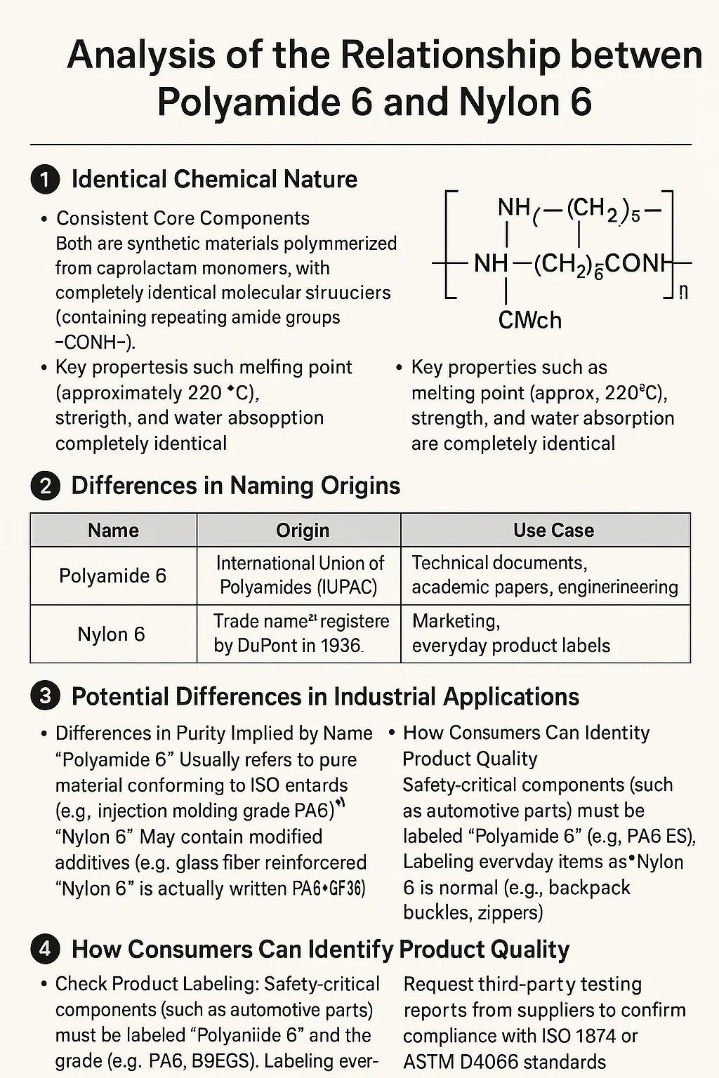 • Konsistente Kernkomponenten: Bei beiden handelt es sich um aus Caprolactam-Monomeren polymerisierte synthetische Materialien mit völlig identischen Molekülstrukturen (die sich wiederholende Amidgruppen -CONH- enthalten).