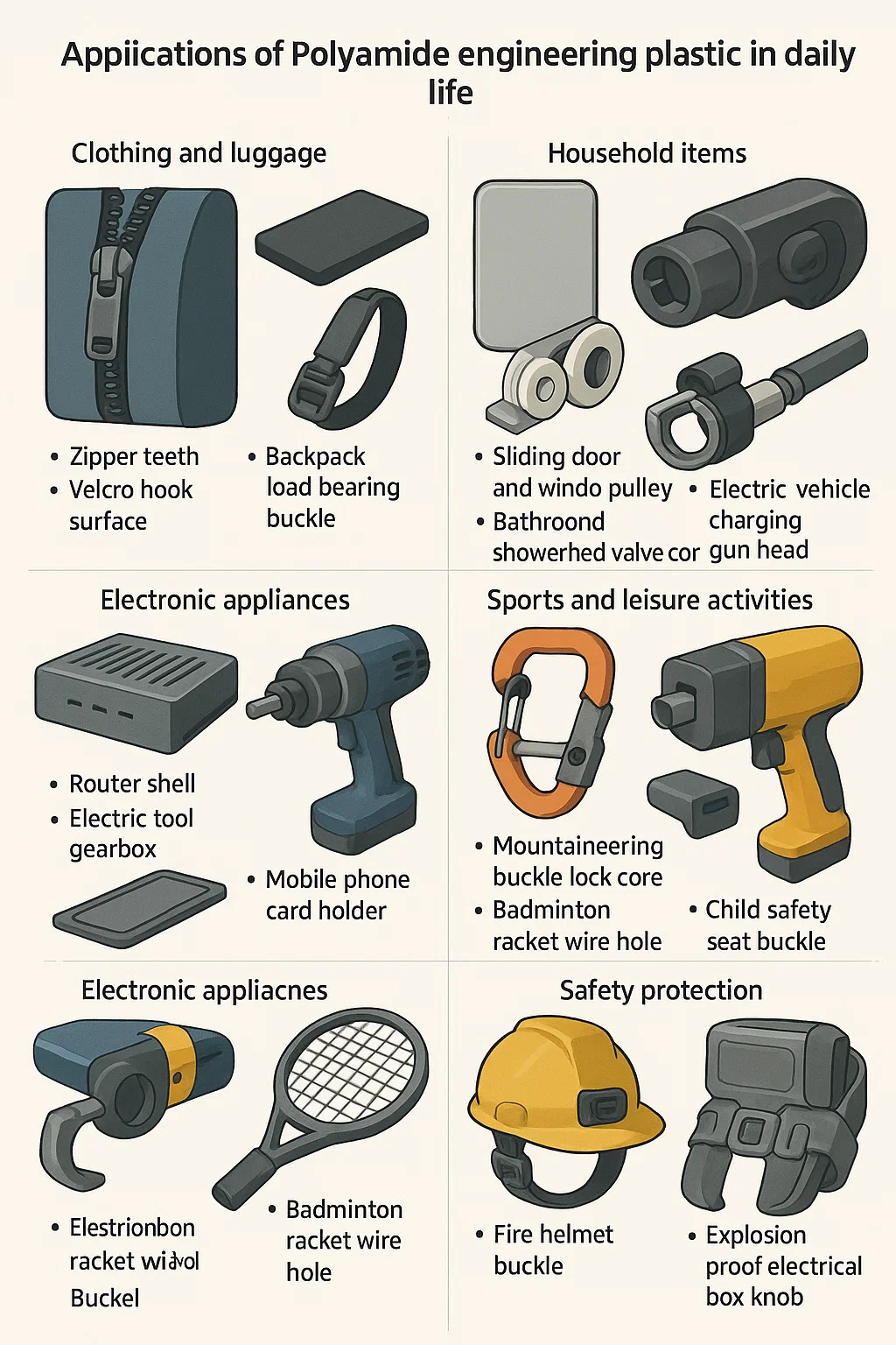 Die Anwendung von Technik Plastikpolyamid Im täglichen Leben durchdringt mehrere Felder, und sein Kernwert liegt in den Eigenschaften, Stahl durch Kunststoff zu ersetzen und leicht und langlebig zu sein. Spezifische typische Szenarien sind wie folgt:
