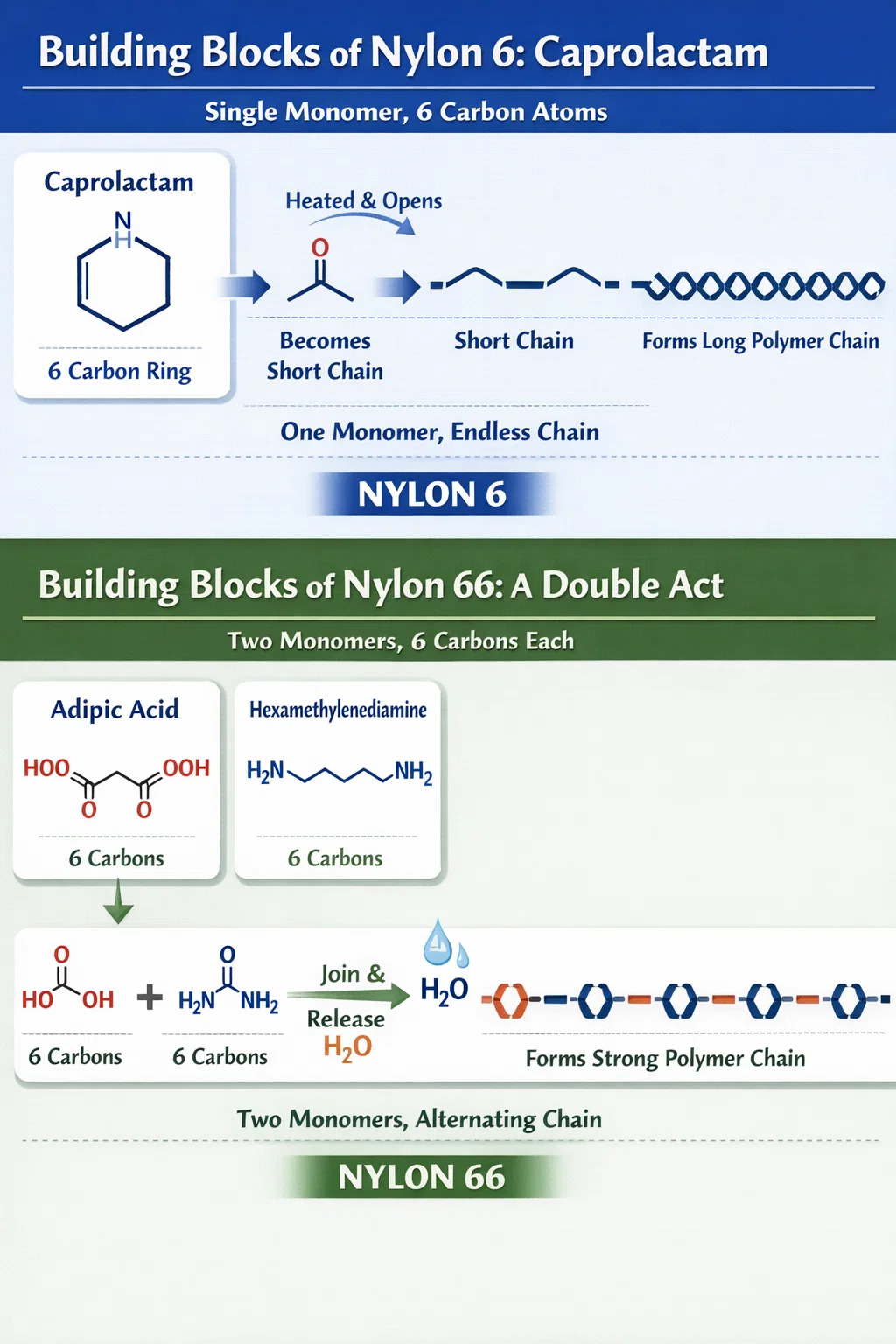 Nylon 66 ist wie ein Duett; Es erfordert, dass zwei verschiedene Bausteine abwechselnd verbunden werden.