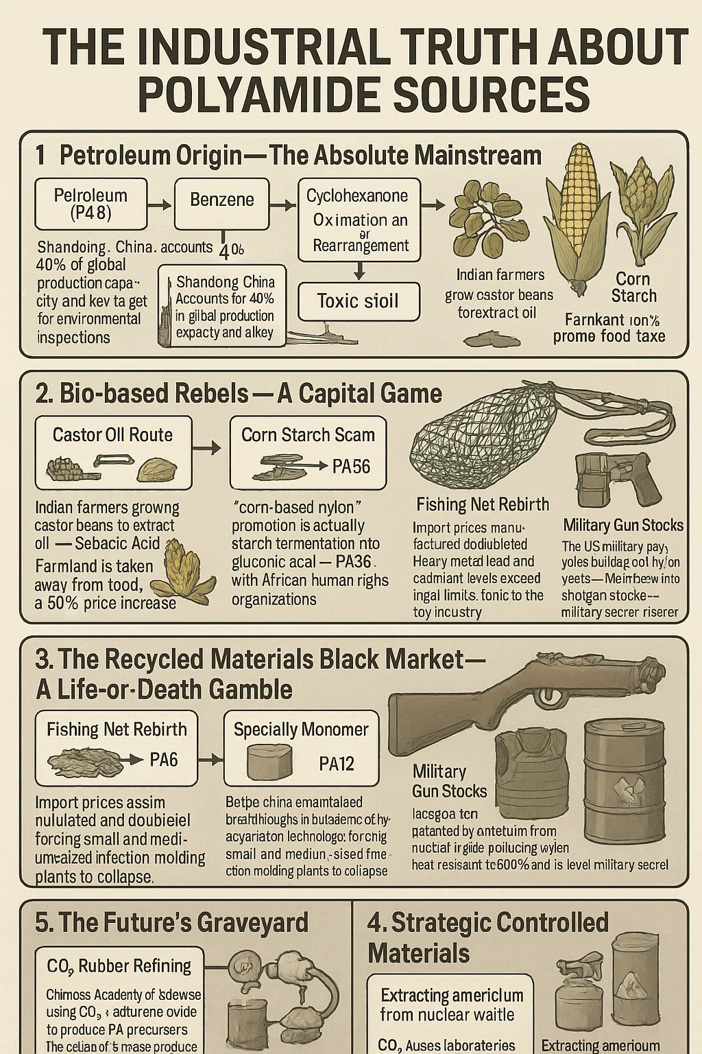 Maisstärke-Betrug: Bei der Werbung für „Nylon auf Maisbasis“ handelt es sich in Wirklichkeit um Stärkefermentation → Gluconsäure → PA56 mit einem Getreideverbrauchsverhältnis von 1:5, was von afrikanischen Menschenrechtsorganisationen boykottiert wurde.